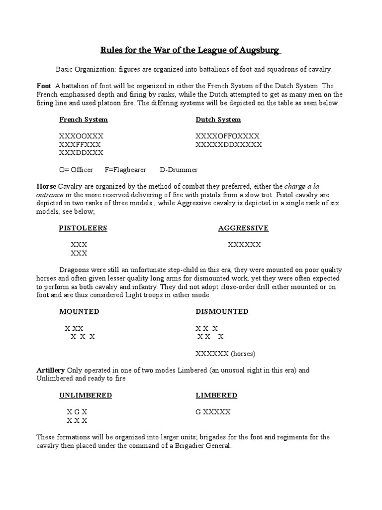Rules for the War of the League of Augsburg