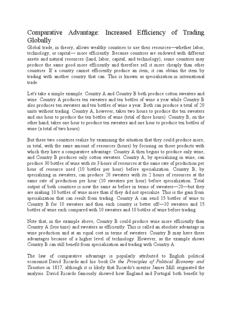 Comparative Advantage: Increased Efficiency of Trading