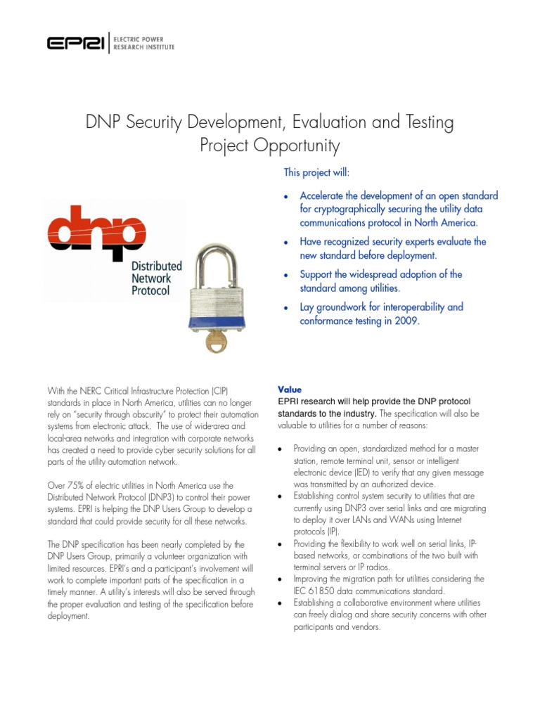 standards in place in North America, utilities can no longer EPRI research will help provide the DNP protocol