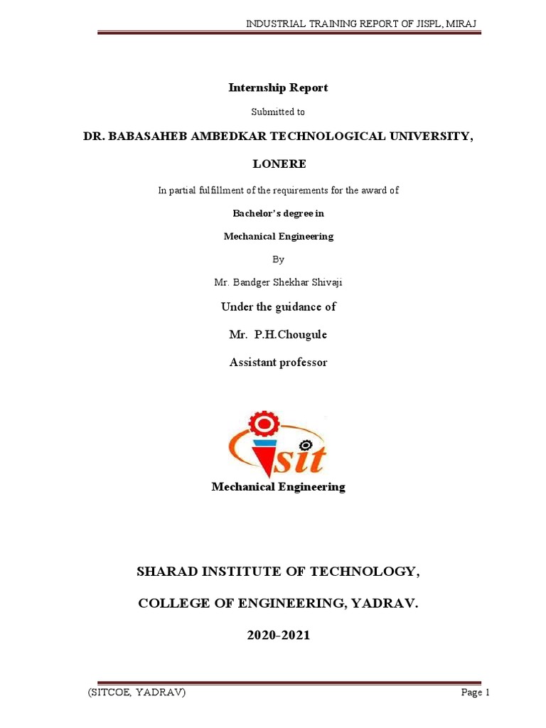 INDUSTRIAL TRAINING REPORT OF JISPL, MIRAJ