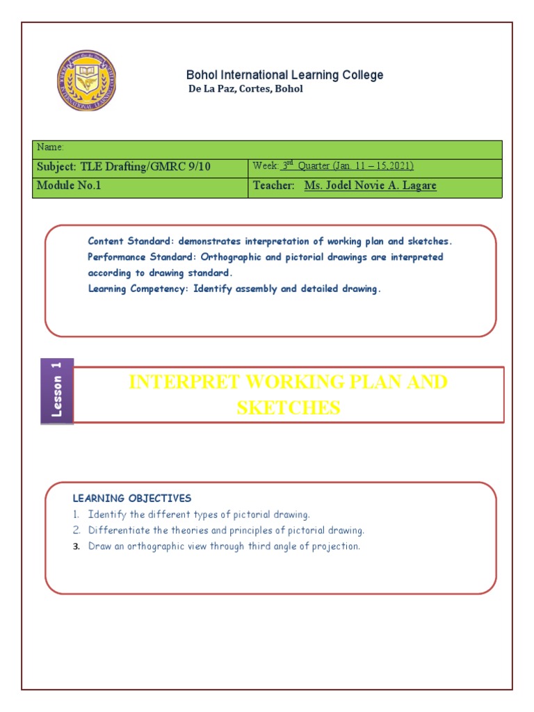 Subject: TLE Drafting/GMRC 9/10 Week: 3rd Quarter (Jan. 11 – 15,2021)