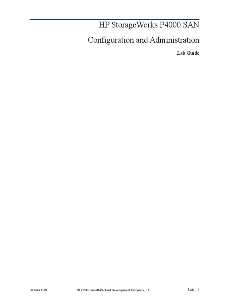 HP Storageworks P4000 San Configuration and Administration: Lab Guide
