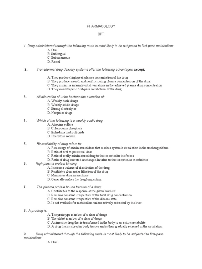 15. Bioavailability differences among oral formulations of a drug are most likely to occur if the drug:
