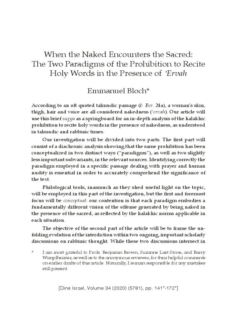 holy words in the presence of ‘ervah can be better understood. The analysis