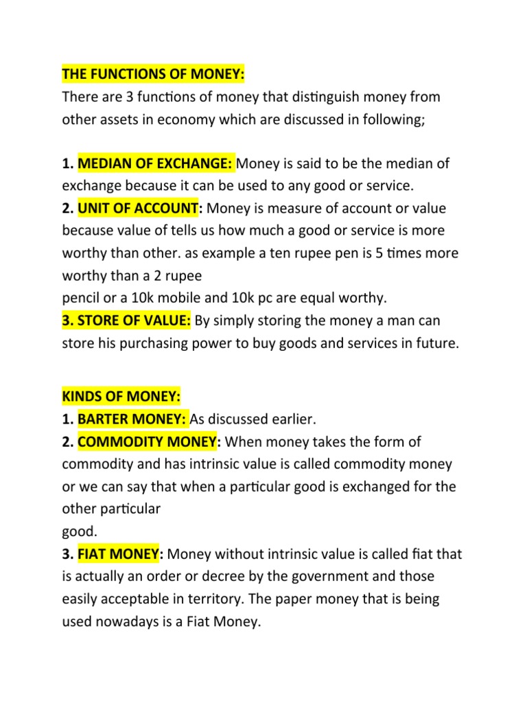 1. MEDIAN OF EXCHANGE: Money is said to be the median of