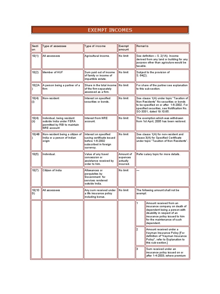 For exemption under S. 10(5) — Leave travel concession or assistance, S. 10(10) — Gratuity, S. 10(10A)