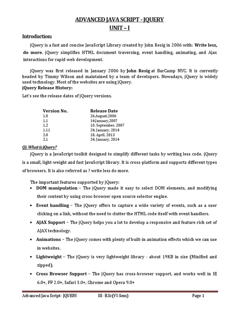 Advanced Java Script- JQUERY III- B.Sc(VI-Sem) Page 98