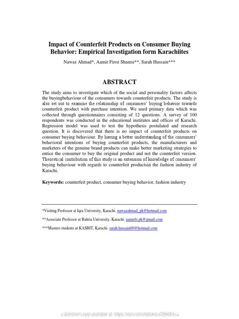 understanding of the impact of counterfeit products on consumer buying behavior.