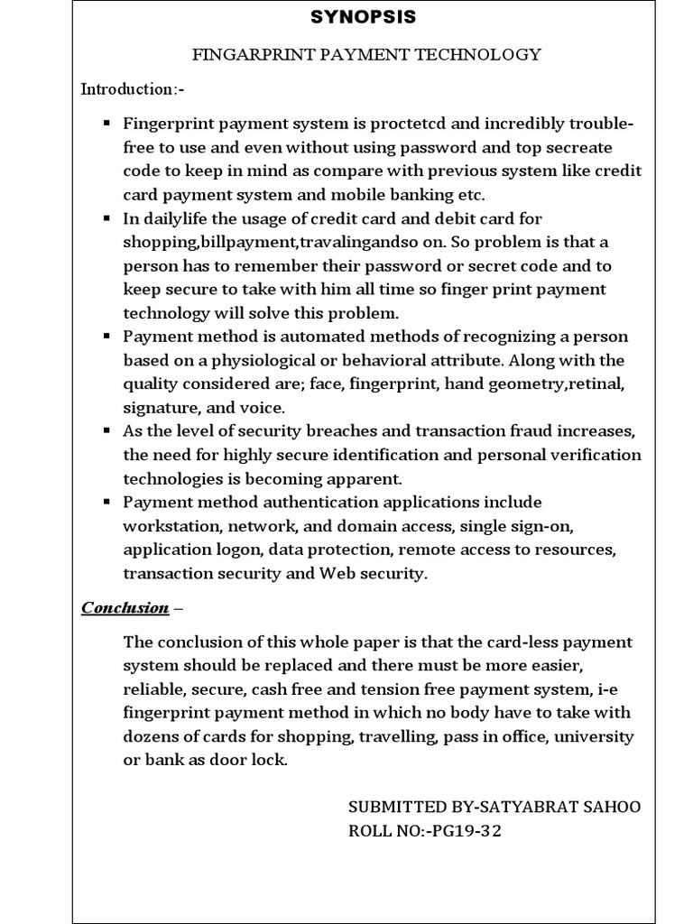 fingerprint payment method in which no body have to take with