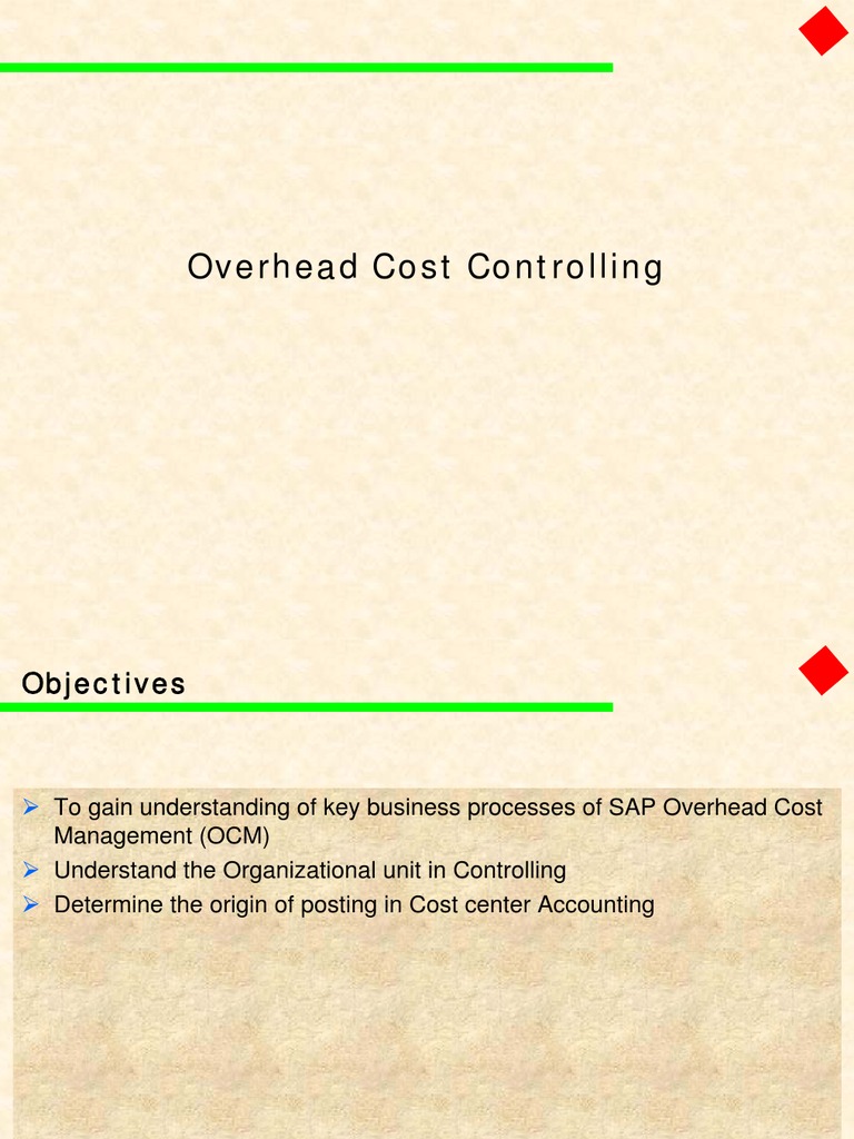 Overhead Cost Controlling component (CO-OM) helps you to plan, allocate, control, and monitor overhead in your organization. Cost Centre Accounting analyzes where overhead occurs within the …