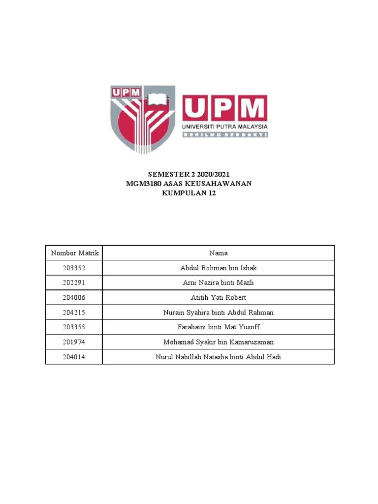 (MGM3180) course, under the supervision of Dr. Abdul Rashid bin Abdullah. Through a