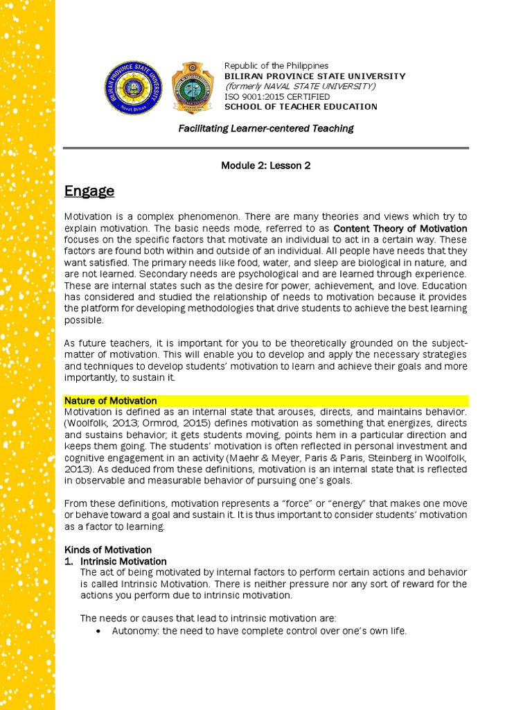 2013). As deduced from these definitions, motivation is an internal state that is reflected