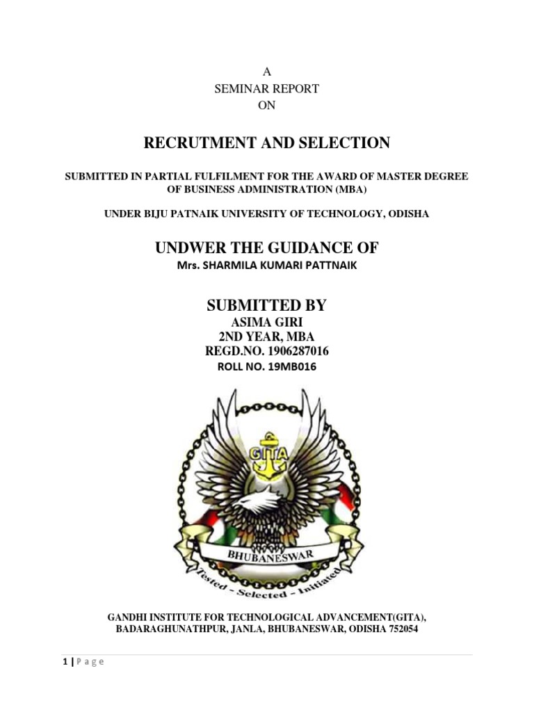 SELECTION PROCESS” submitted by me, to MBA department of Gandhi
