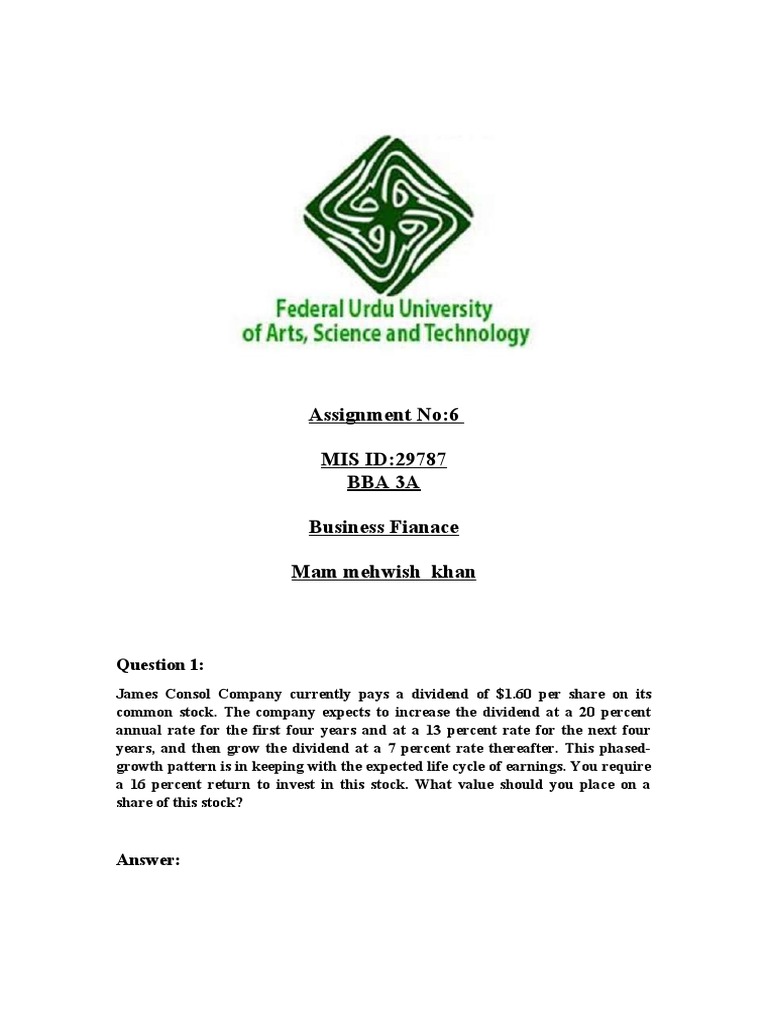 company’s annual dividend to grow at a constant 6 percent rate forever.