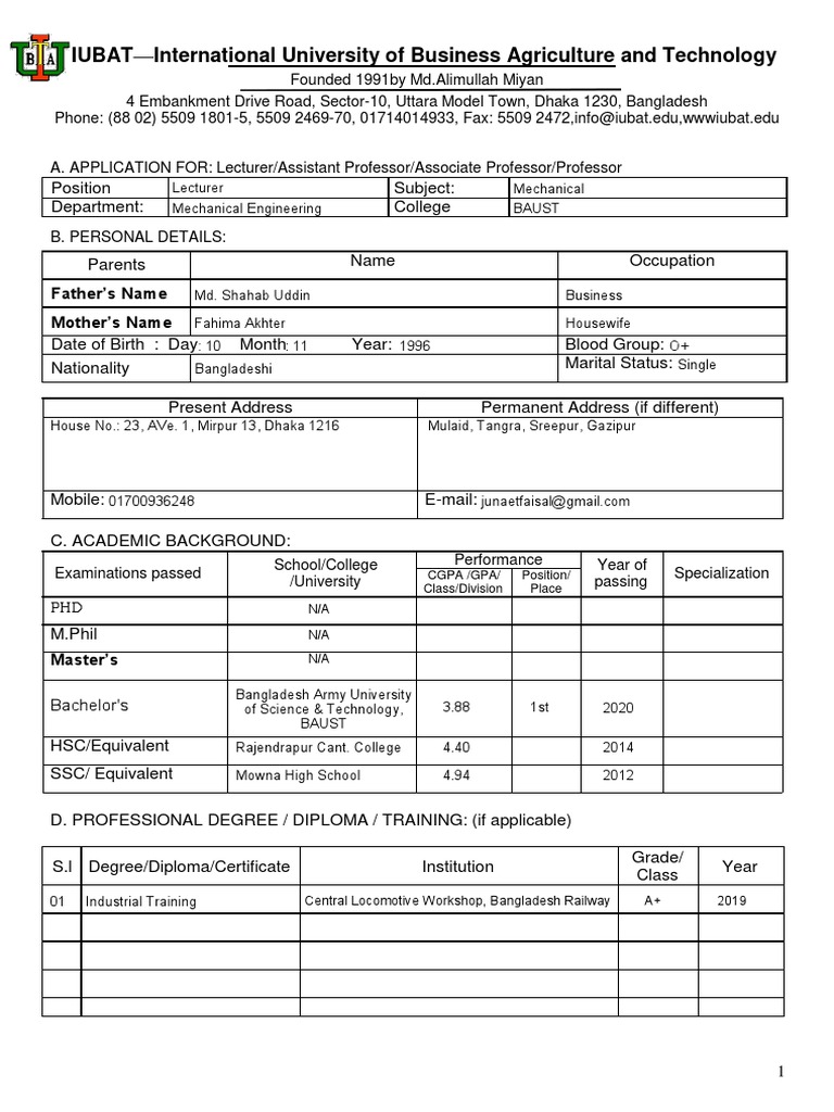 Mobile: 01700936248 E-mail: junaetfaisal@gmail.com