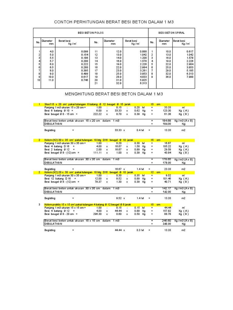 Perhitungan Berat Besi Beton 1 M3