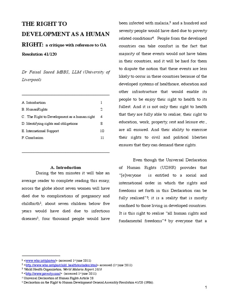 6 Declaration on the Right to Human Development General Assembly Resolution 41/28 (1986).