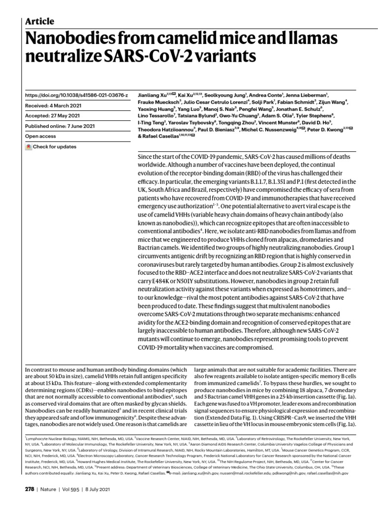authors contributed equally: Jianliang Xu, Kai Xu, Peter D. Kwong, Rafael Casellas. ✉e-mail: [Link]@[Link]; nussen@[Link]; pdkwong@[Link]; [Link]@[Link]