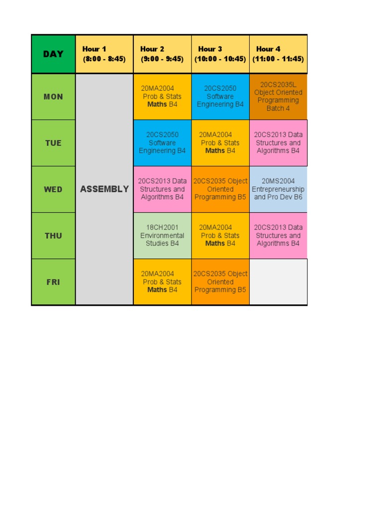 DAY (8:00 - 8:45) (9:00 - 9:45) (10:00 - 10:45) (11:00 - 11:45)