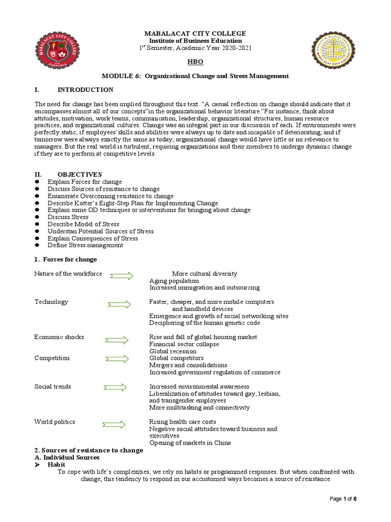 MODULE 6: Organizational Change and Stress Management