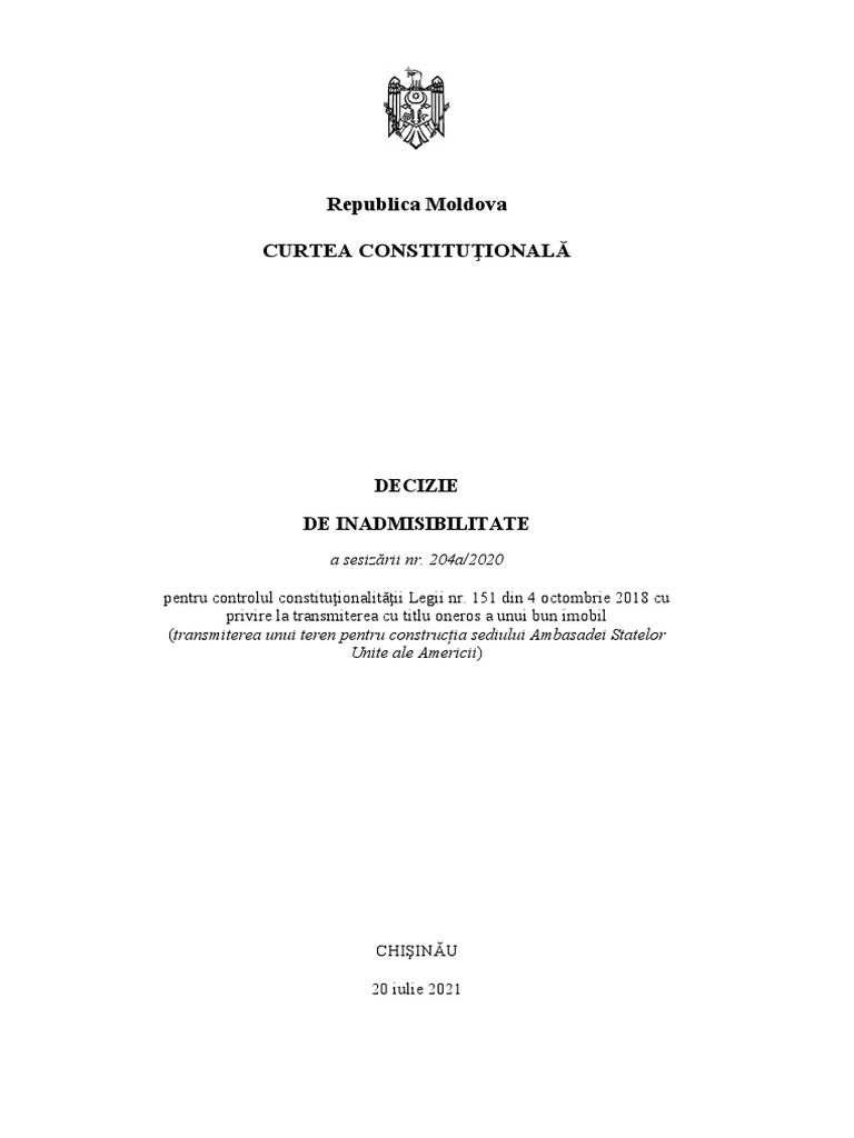 DECIZIE DE INADMISIBILITATE A SESIZĂRII NR. 204A/2020