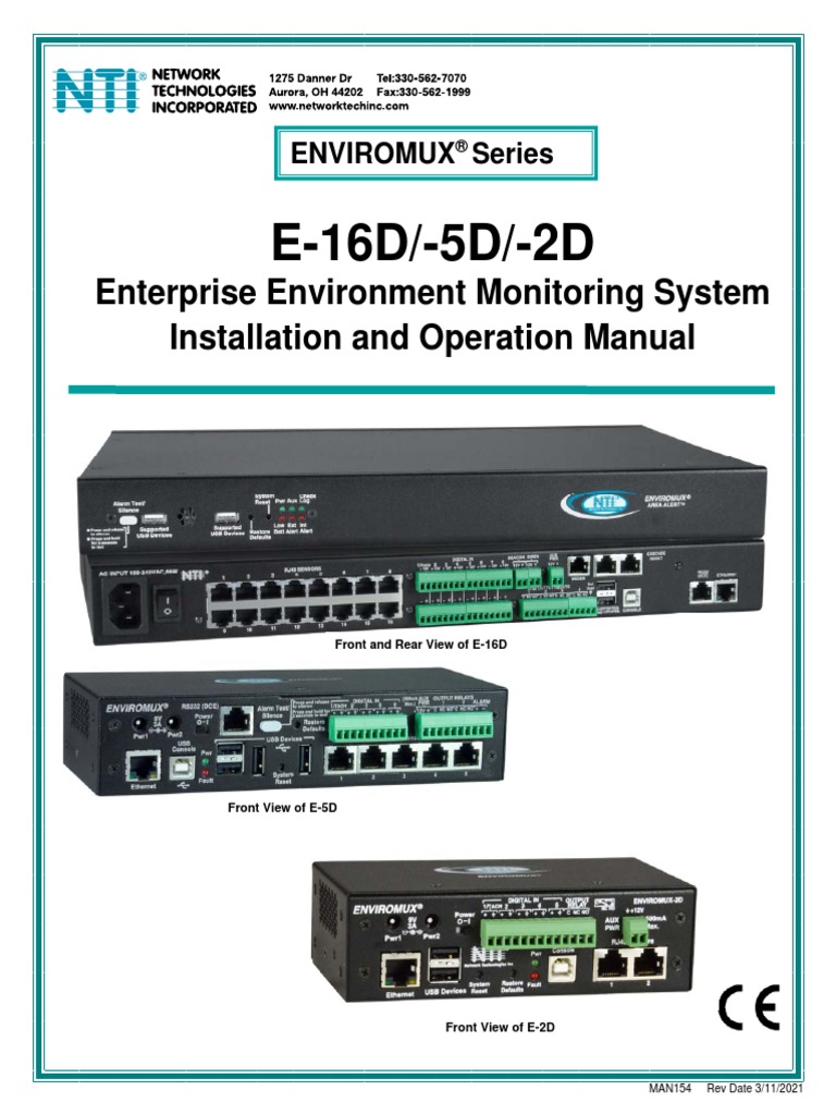 E-16D/-5D/-2D: Enterprise Environment Monitoring System Installation and Operation Manual