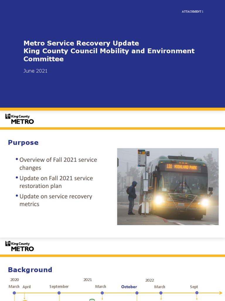 Metro Service Recovery UpdateKing County Council Mobility and Environment Committee