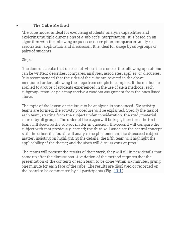 The cube model is ideal for exercising students’ analysis capabilities and