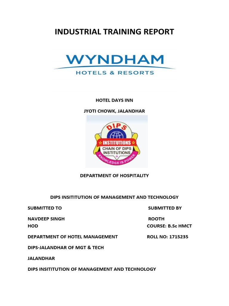 DEPARTMENT OF HOTEL MANAGEMENT ROLL NO: 1715235