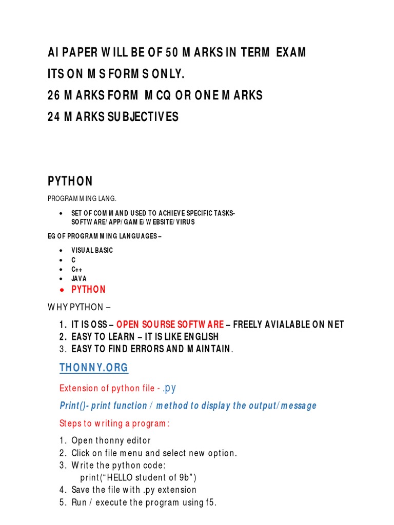 AI PAPER WILL BE OF 50 MARKS IN TERM EXAM