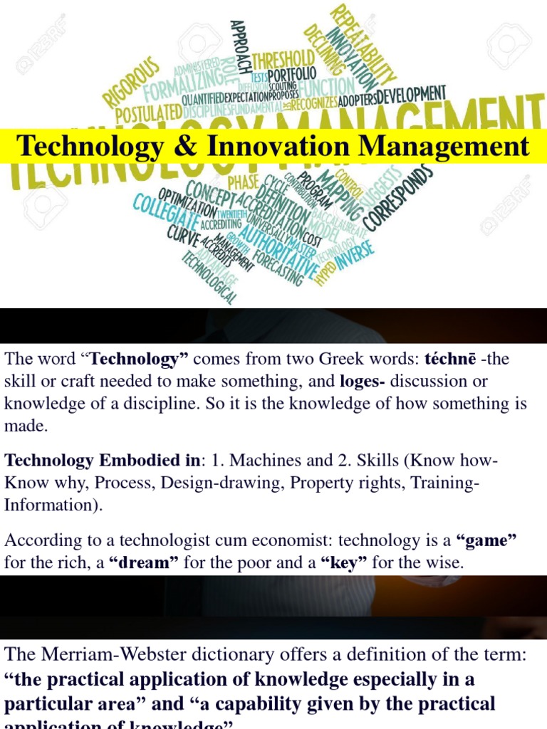 Technology Embodied in: 1. Machines and 2. Skills (Know how-