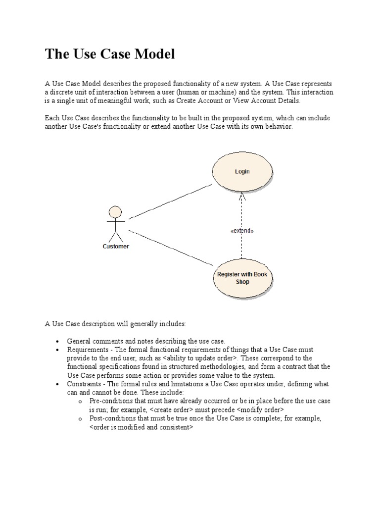 A Use Case Model describes the proposed functionality of a new system. A Use Case represents