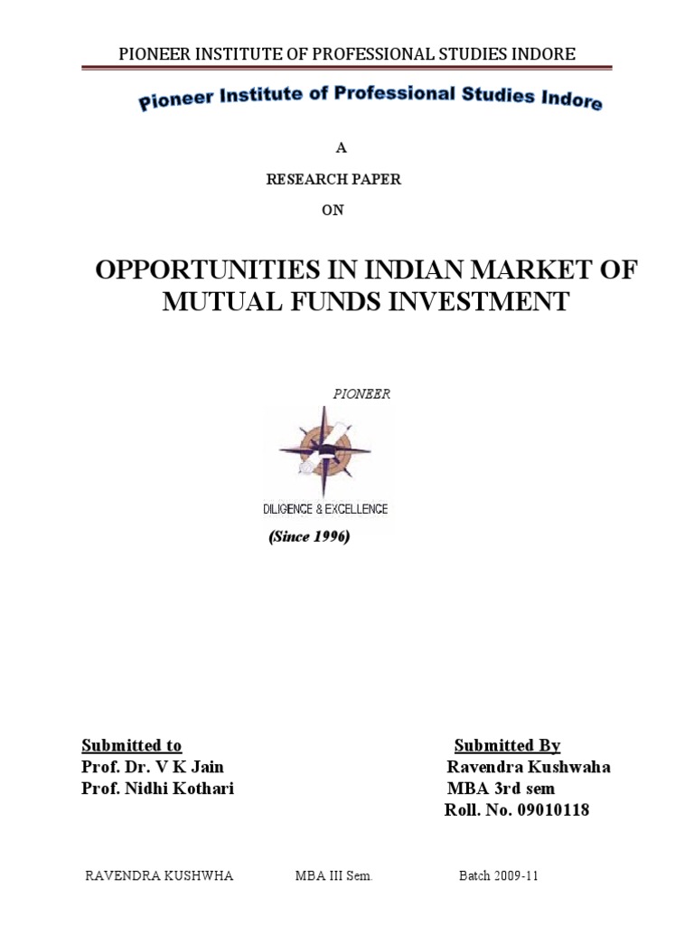 I hereby declare that this Research Paper entitled “OPPORTUNITIES IN INDIAN MARKET