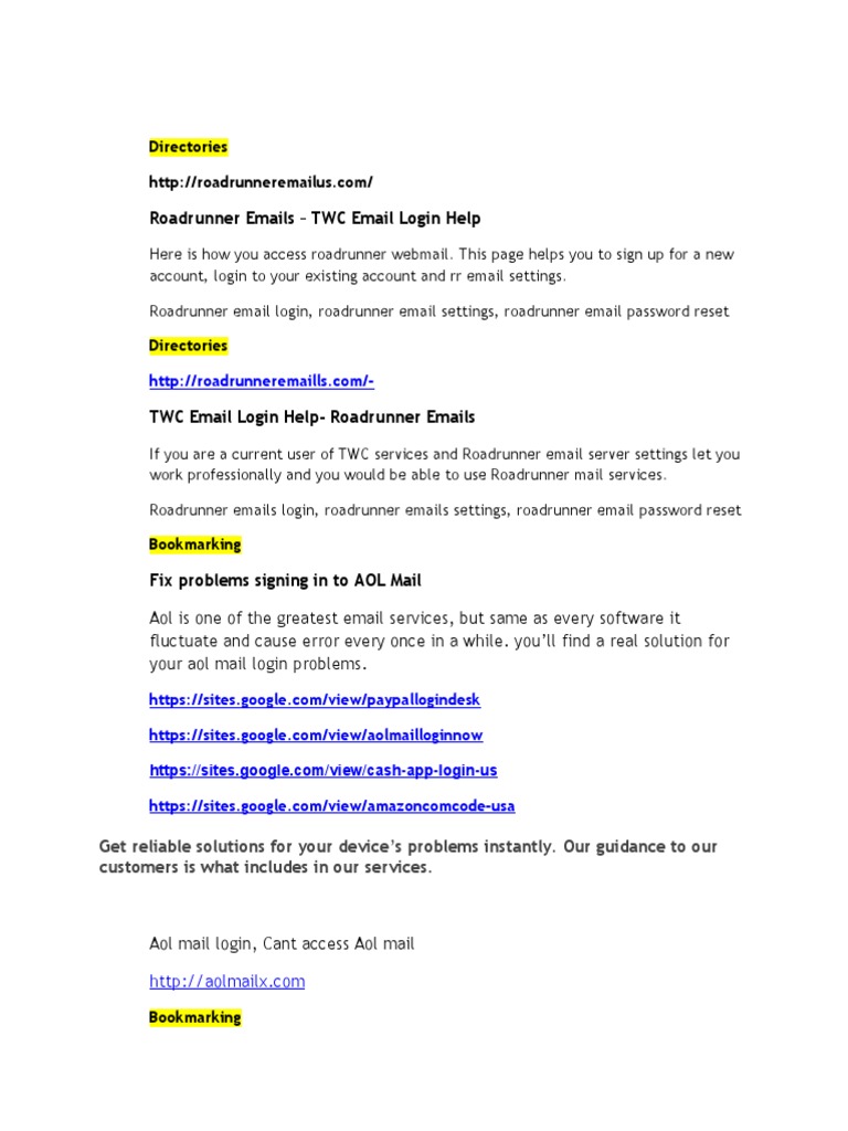 Roadrunner Emails - TWC Email Login Help: Directories