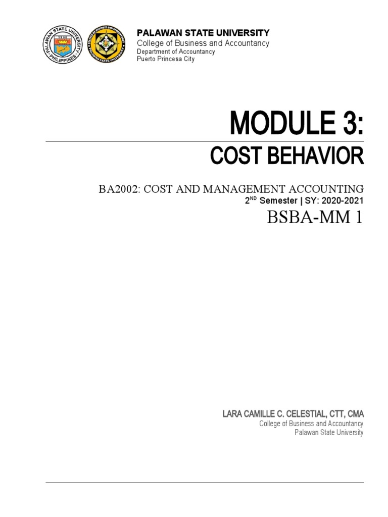 BA2002: Cost and Management Accounting| Module 3: Cost Behavior 3