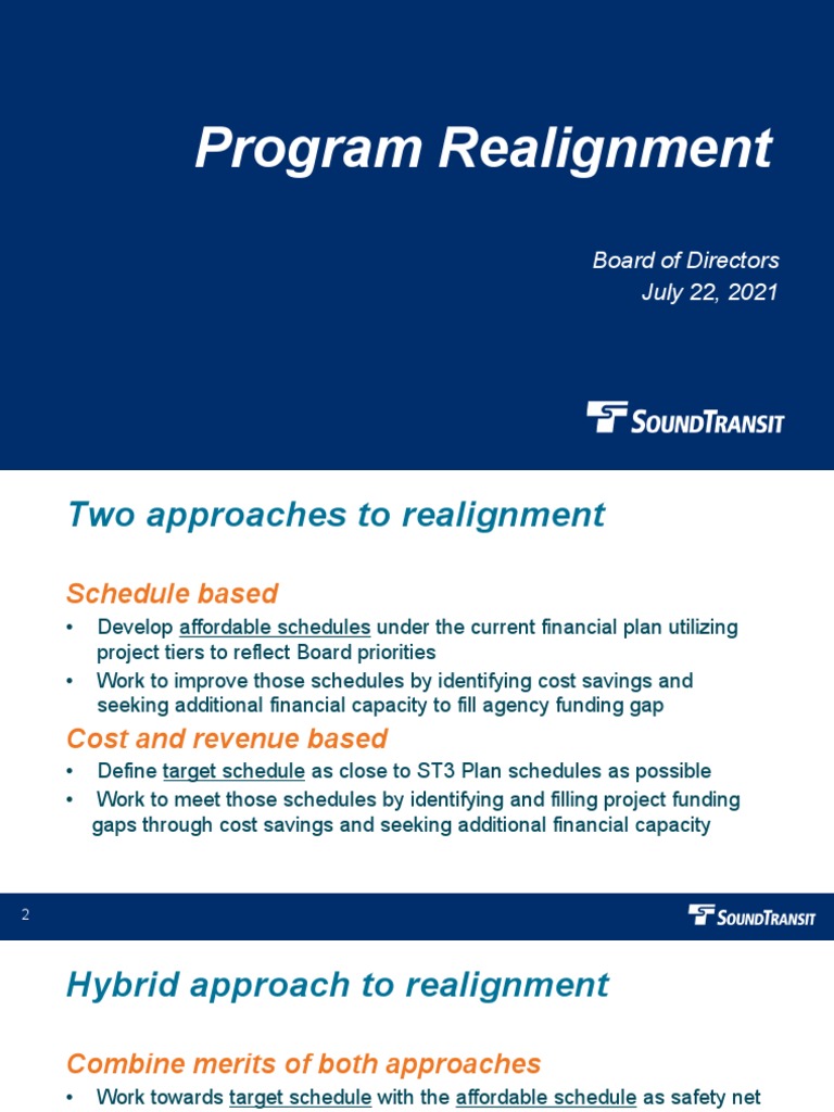 •Develop affordable schedulesunder the current financial plan utilizing project tiers to reflect Board priorities•Work to improve those schedules by identifying cost savings and seeking additional financial capacity to fill agency funding gap