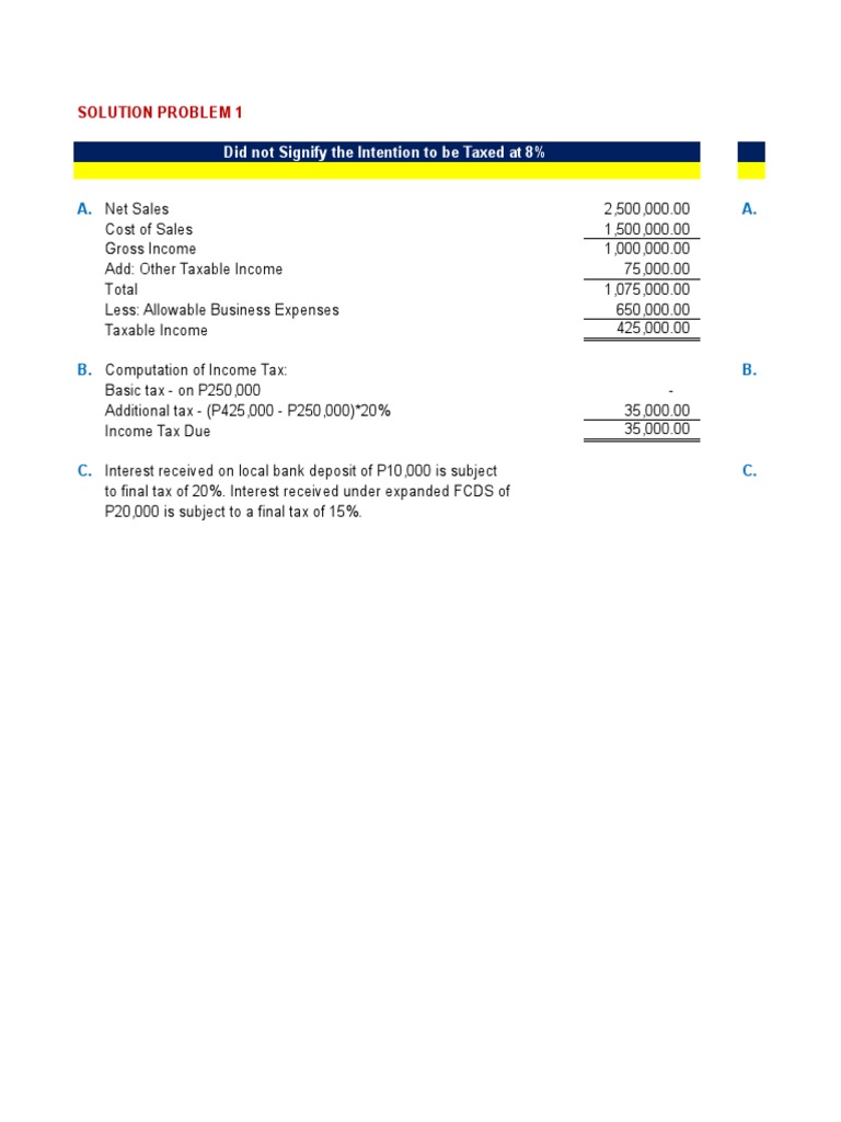 B. Computation of Income Tax: B.