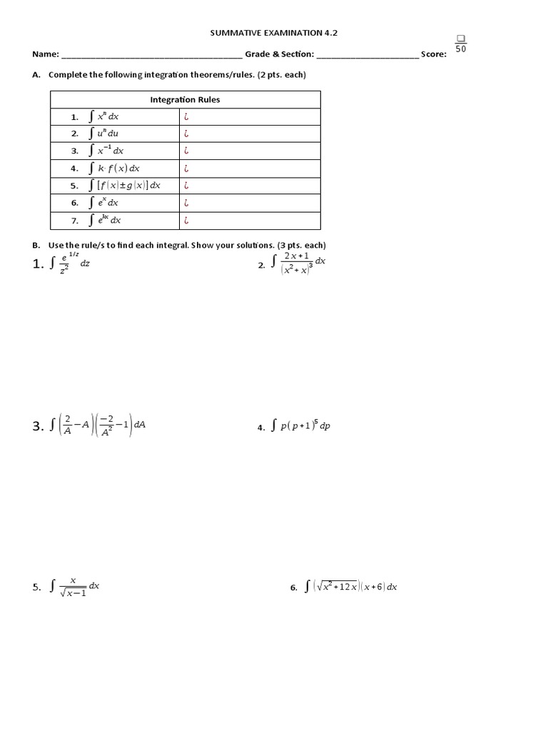 B. Use the rule/s to find each integral. Show your solutions. (3 pts. each)