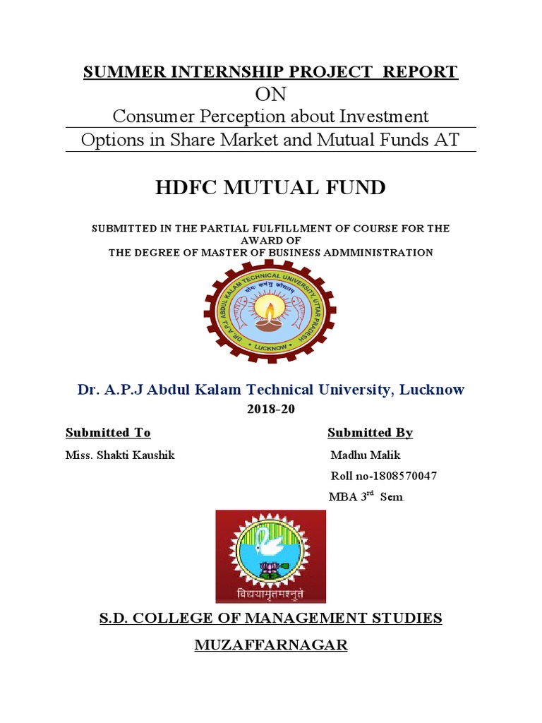 I, Madhu Malik of MBA 2 Year, hereby declare that the project title “Consumer Perception