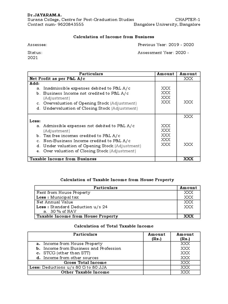 b. Income from Business and Profession XXX