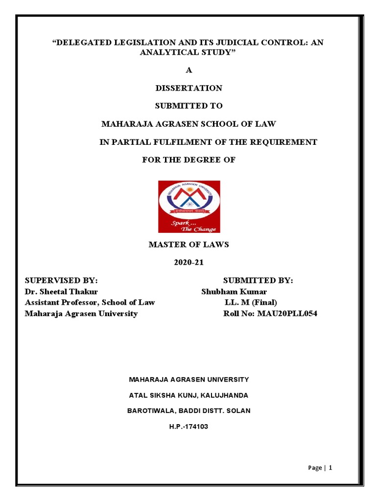 The dissertation submitted by Shubham Kumar Regn. No MAU20PLL054 for the award of LLM Degree,