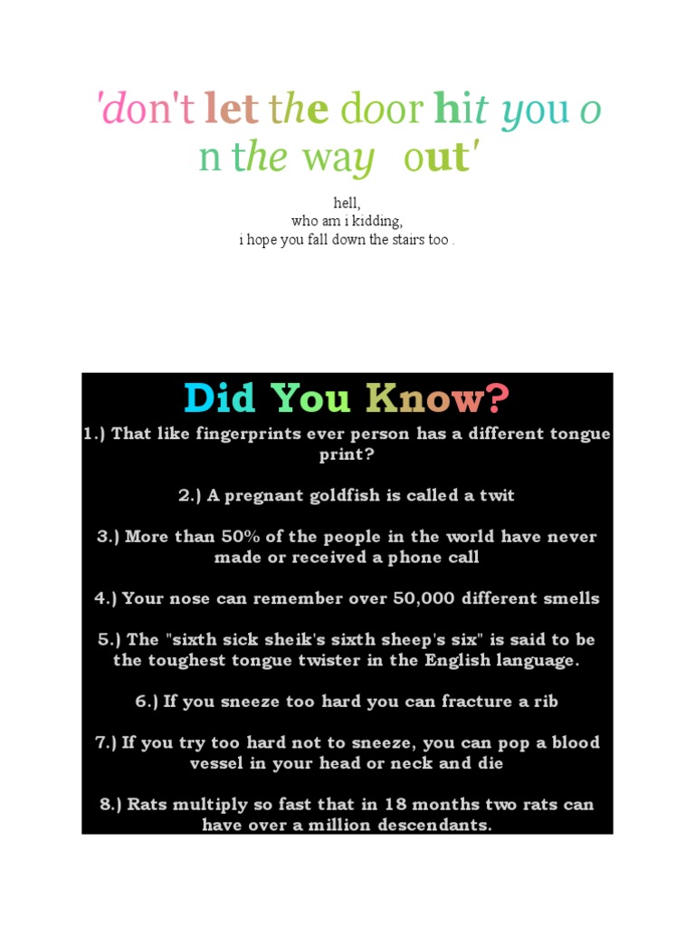 10.) A ducks QUACK doesn't echo anywhere and no one