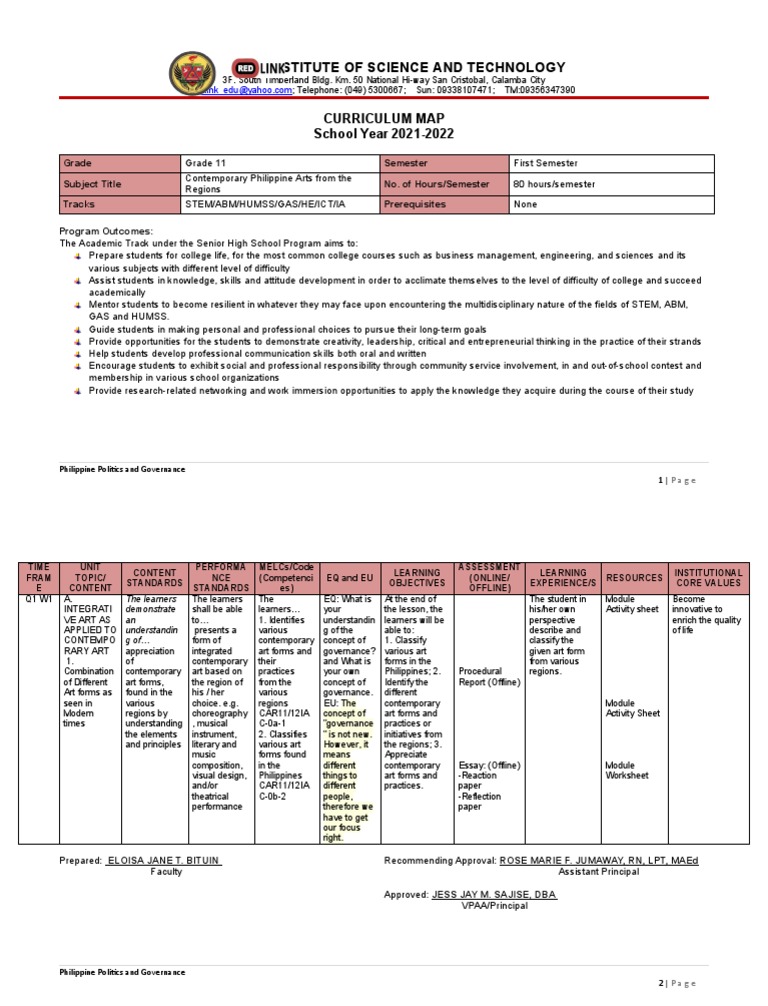 VE ART AS an to… 1. Identifies understandin learners will be perspective enrich the quality