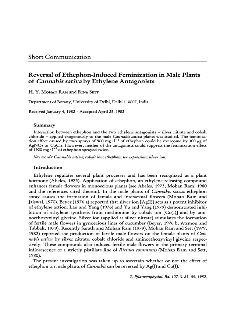Reversal of ethephon-induced feminization in Cannabis sativa 87