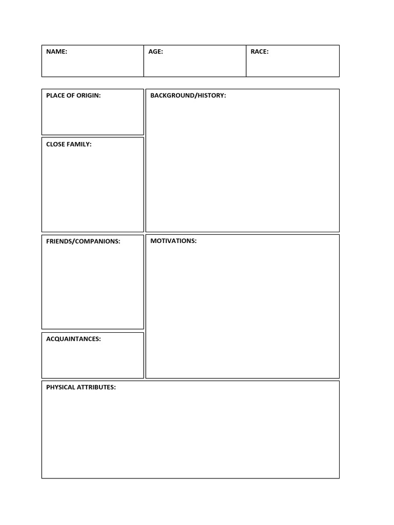Character Sheet Fantasy Science Fiction Worldbuilding Template 3