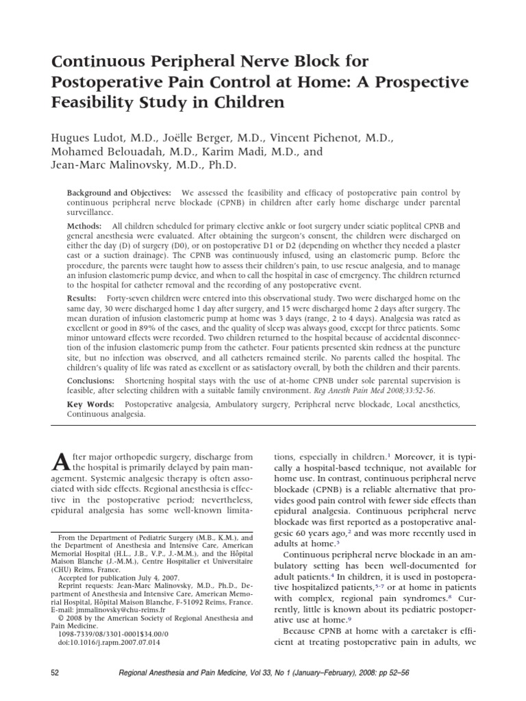 feasible, after selecting children with a suitable family environment. Reg Anesth Pain Med 2008;33:52-56.