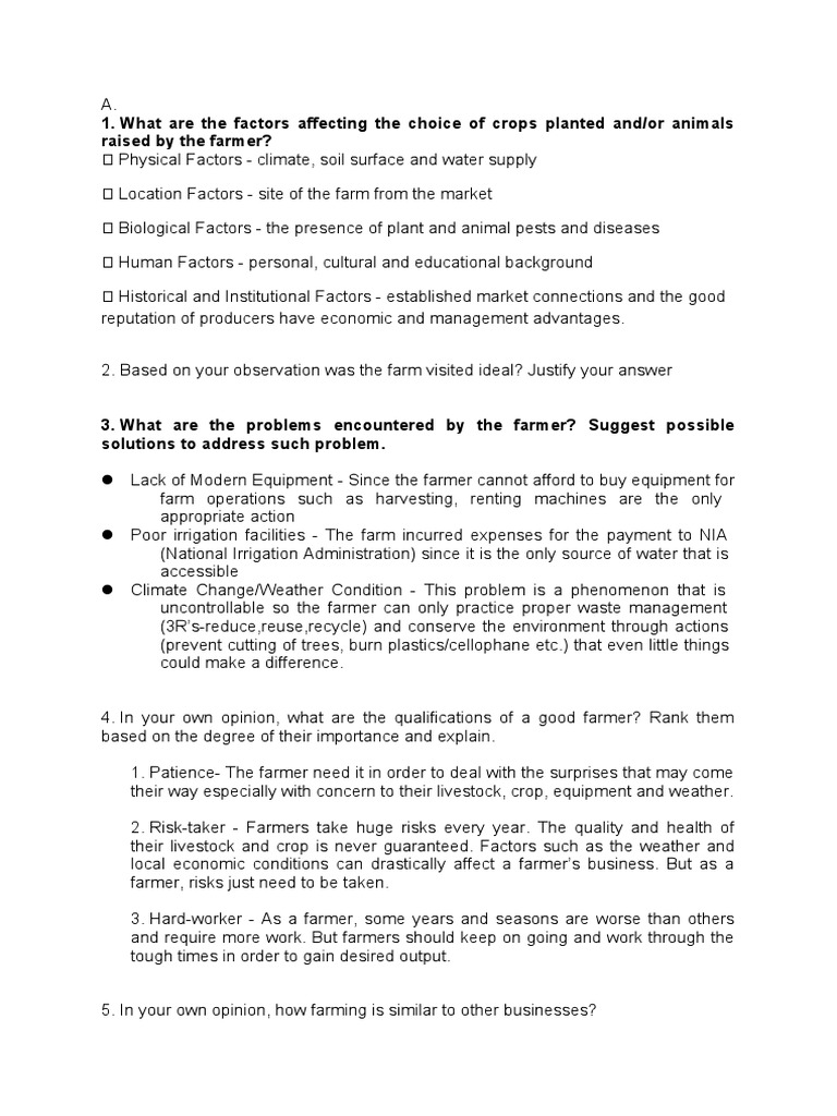 1. What are the factors affecting the choice of crops planted and/or animals