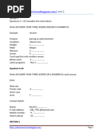 Write NO MORE THAN TWO WORDS AND/OR A NUMBER for each