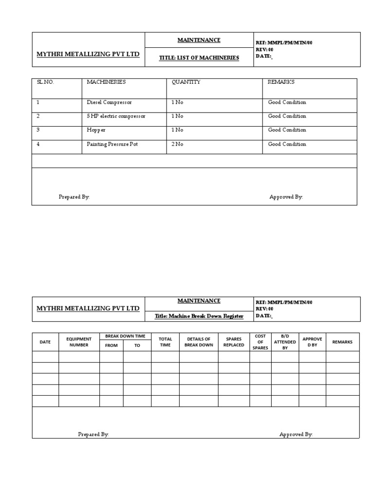 MAINTENANCE REF: MMPL/PM/MTN/00