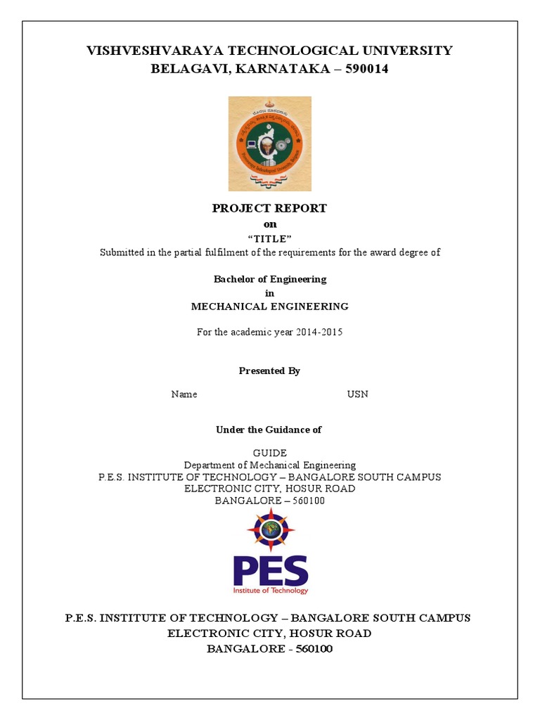 12. Footer - Department of Mechanical Engg., PESIT-BSC 2014-2015 on the LEFT,